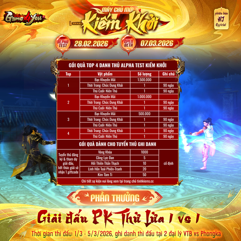 ⚔️ PHẦN THƯỞNG DÀNH CHO TOP 4 DANH THỦ ALPHA TEST KIẾM KHỞI ⚔️