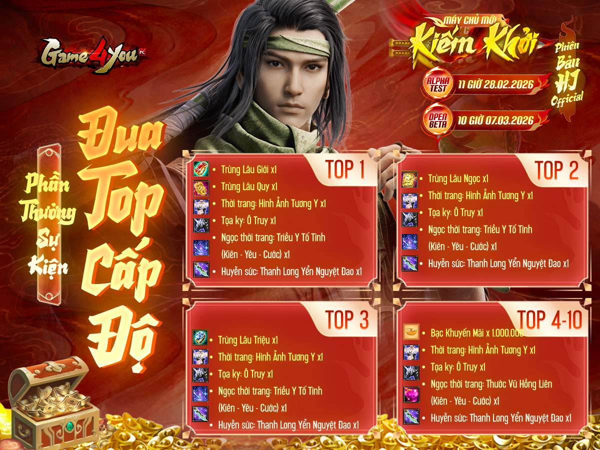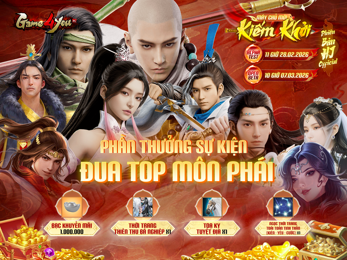 Đúng 10:00 ngày 07/03/2026, ngay khi máy chủ mới Kiếm Khởi chính thức OpenBeta, chuỗi sự kiện Đua Top khai mở máy chủ chính thức khởi tranh.