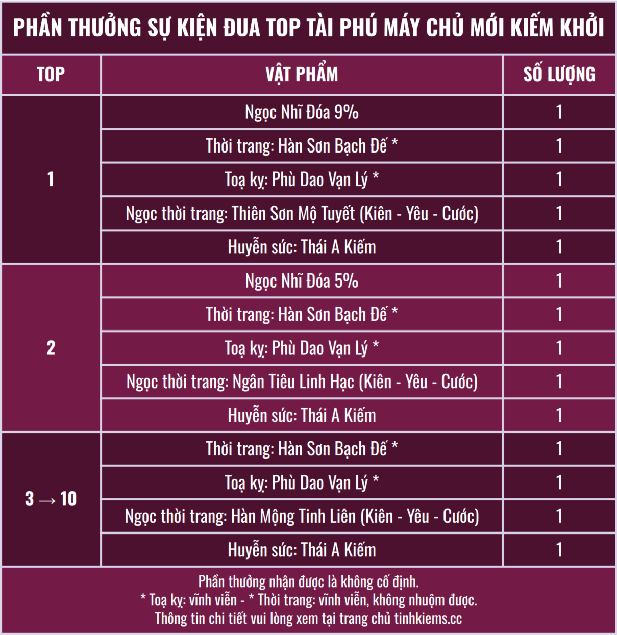 - Sự kiện Thiên Long Tầm Bảo tái ngộ máy chủ mới Kiếm Khởi và Hợp Kiếm