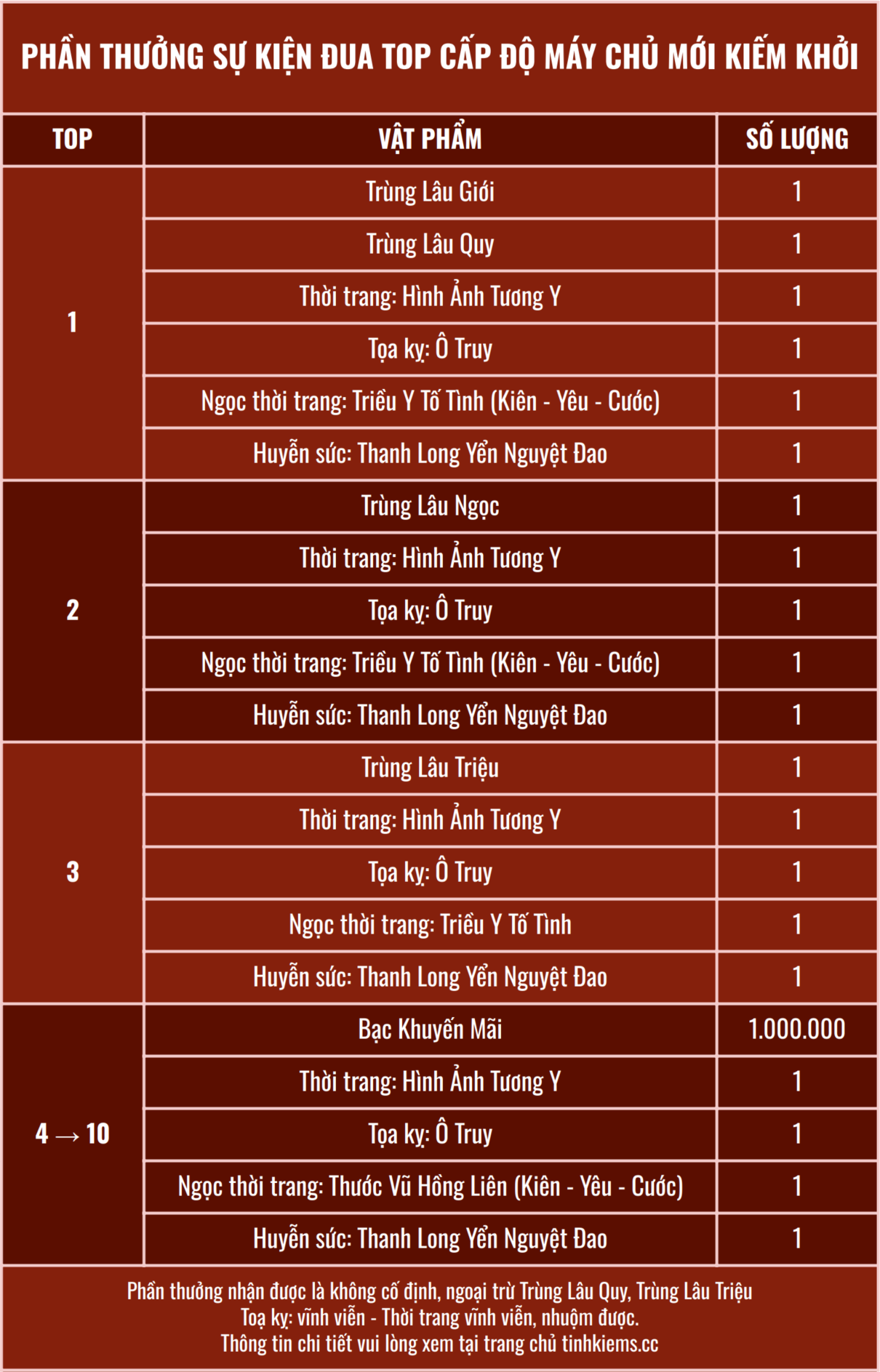 I. SỰ KIỆN ĐUA TOP INGAME - TRANH PHONG BẢNG VÀNG KIẾM KHỞI