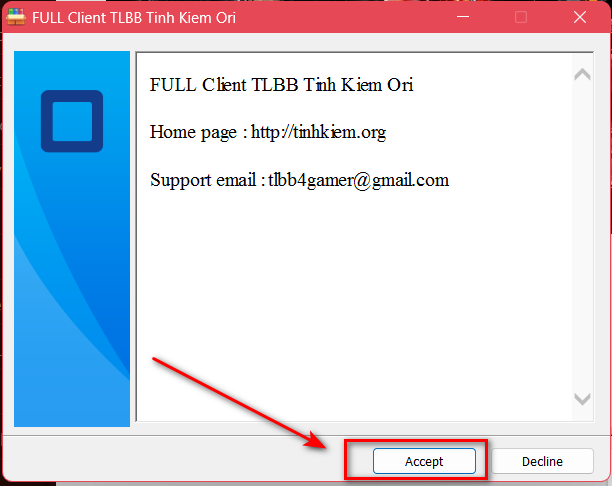 → Cửa sổ cài đặt game xuất hiện, click accept để bắt đầu cài đặt