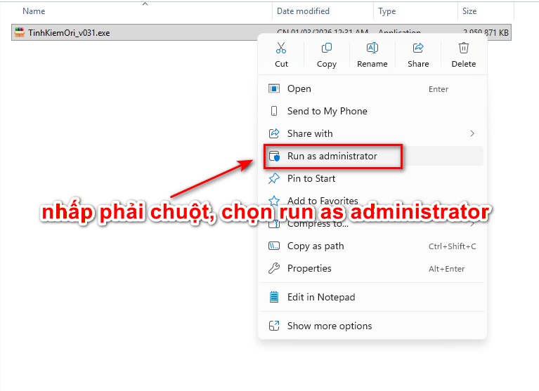 Nếu file tải về với dạng .exe, hãy double click/chạy file đó (xem ảnh bên dưới)