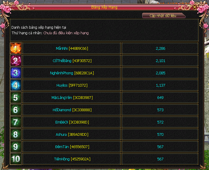 Các nhân vật đạt Top 3 - 10 không cần gửi email nhận thưởng.