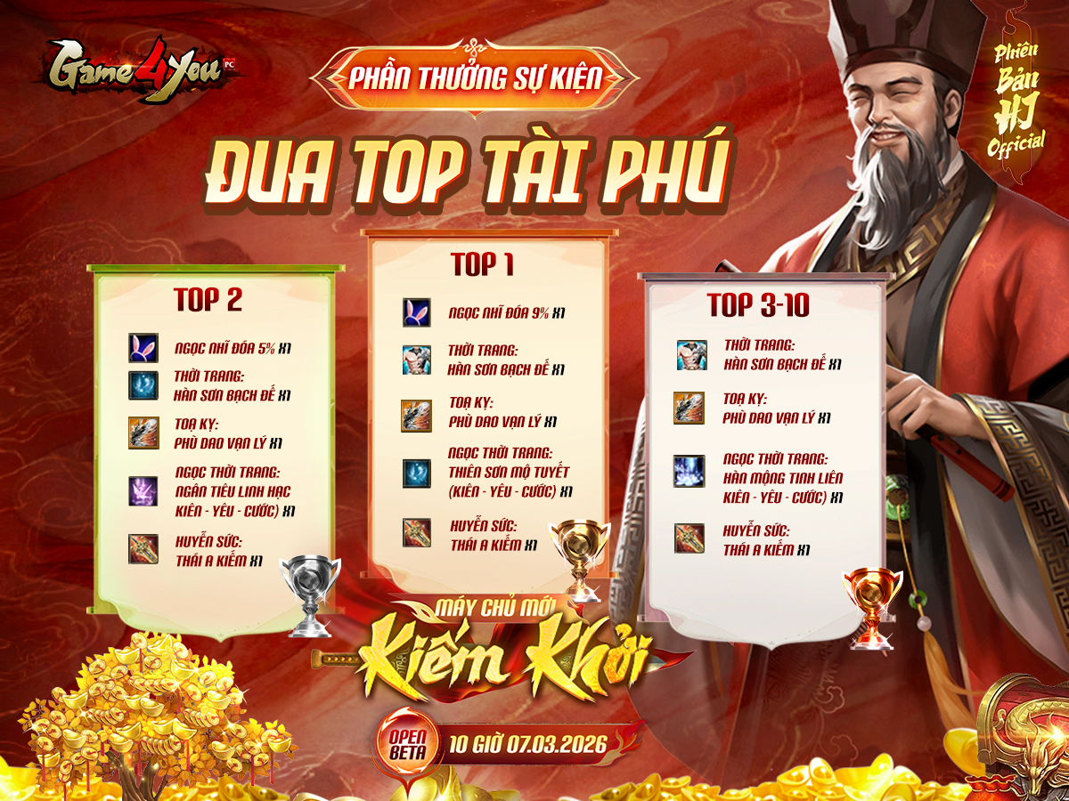 Sau 3 tuần tranh tài không ngơi nghỉ, bảng vàng Đua Top Tài Phú tại máy chủ mới Kiếm Khởi đã chính thức lộ diện những cái tên xứng danh cao thủ!