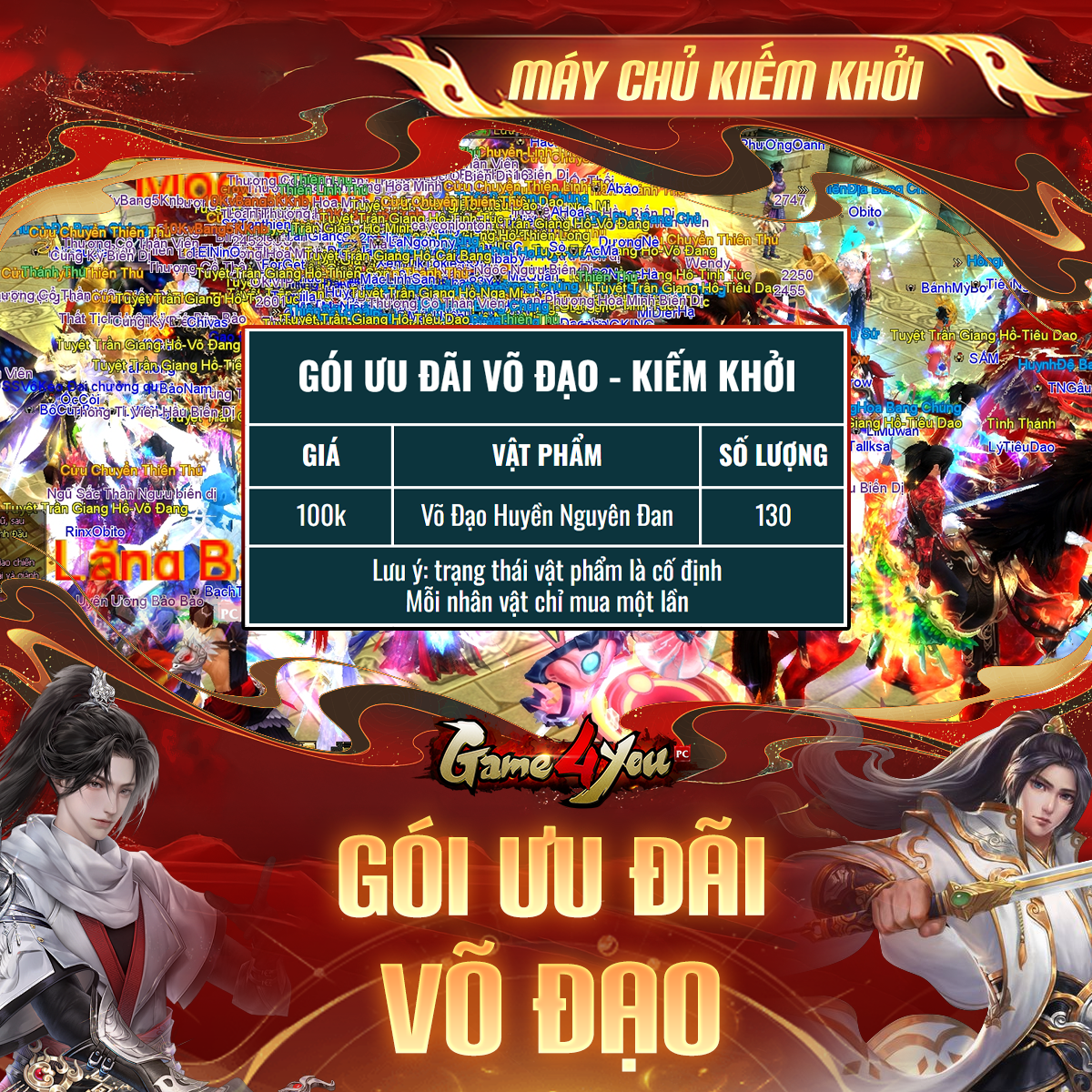 Nhân dịp Võ Đạo khai mở, Kiếm Khởi cũng chuẩn bị Gói Ưu Đãi Võ Đạo hỗ trợ cho bằng hữu muốn đẩy nhanh quá trình bồi dưỡng tính năng, giúp việc trải nghiệm trở nên thuận tiện và dễ dàng hơn.